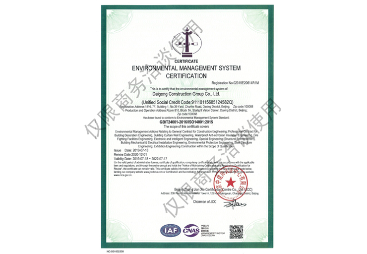戴工建設(shè)集團(tuán)有限公司,創(chuàng)建于2009年,注冊(cè)資本9888萬(wàn)元人民幣。公司位于北京市大興區(qū)。具有建委頒發(fā)的建筑裝飾裝修專業(yè)壹級(jí),防水保溫工程專業(yè)壹級(jí),建筑幕墻專業(yè)貳級(jí),消防設(shè)施專業(yè)貳級(jí),電子與智能化專業(yè)貳級(jí),特種工程(結(jié)構(gòu)補(bǔ)強(qiáng))專業(yè)不分等級(jí),建筑機(jī)電安裝專業(yè)貳級(jí),環(huán)保工程專業(yè)貳級(jí),鋼結(jié)構(gòu)專業(yè)貳級(jí),建筑工程總承包貳級(jí),建筑裝飾工程設(shè)計(jì)專項(xiàng)甲級(jí),展覽陳列工程設(shè)計(jì)與施工壹級(jí),展覽展示工程壹級(jí)...更多>>